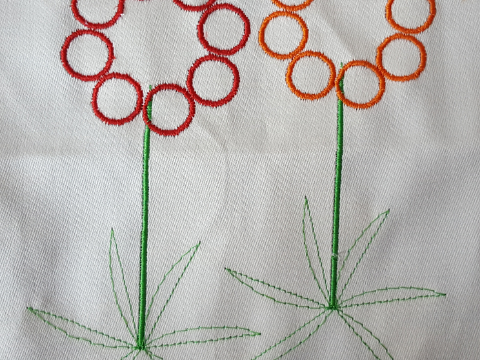 A simple flower created by trial and error. There is no mathematical thinking behind. Such a simple figure should be embroidered with satin stitches. Motion -> thicklines can achieve this easily. Set "turbo mode" in the settings.